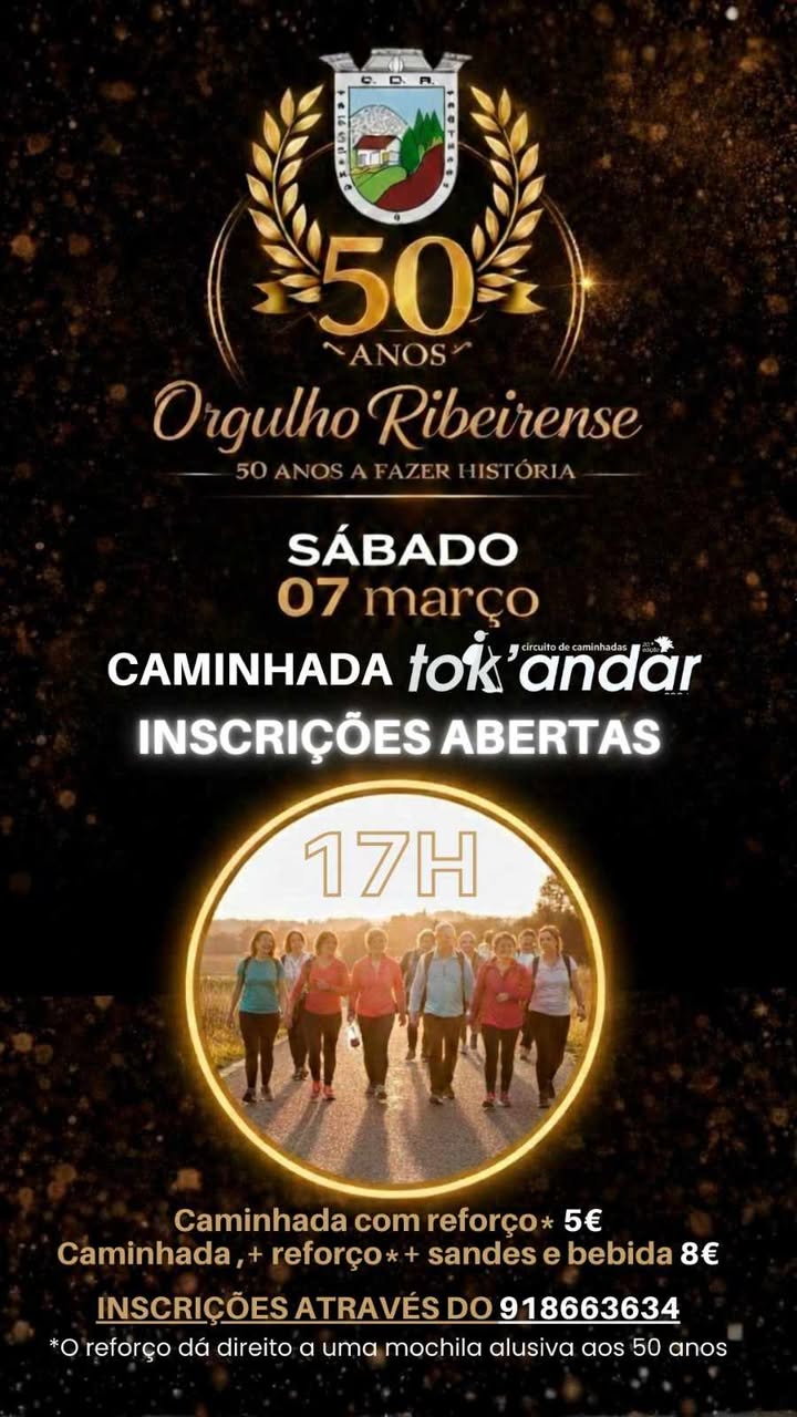 No próximo sábado, no âmbito do Tok'andar o Clube Desportivo Ribeirense convida todos a participar num passeio pedestre - "50 Anos Ribeirense".