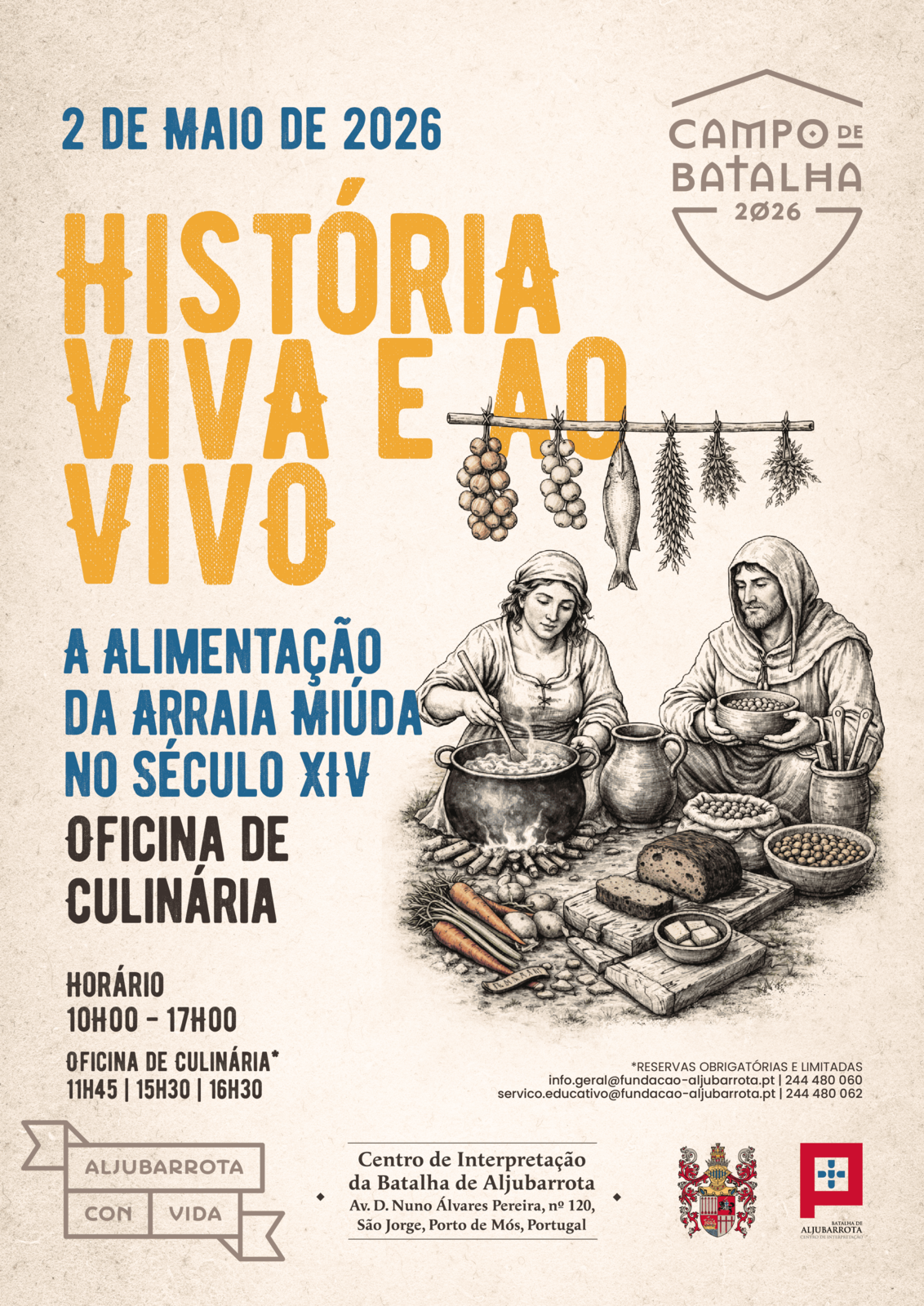 O Centro de Interpretação da Batalha de Aljubarrota apresenta um especial dia convidando a descobrir os sabores do quotidiano medieval na oficina “A Alimentação da Arraia Miúda no Século XIV” no evento "História Viva e ao Vivo".