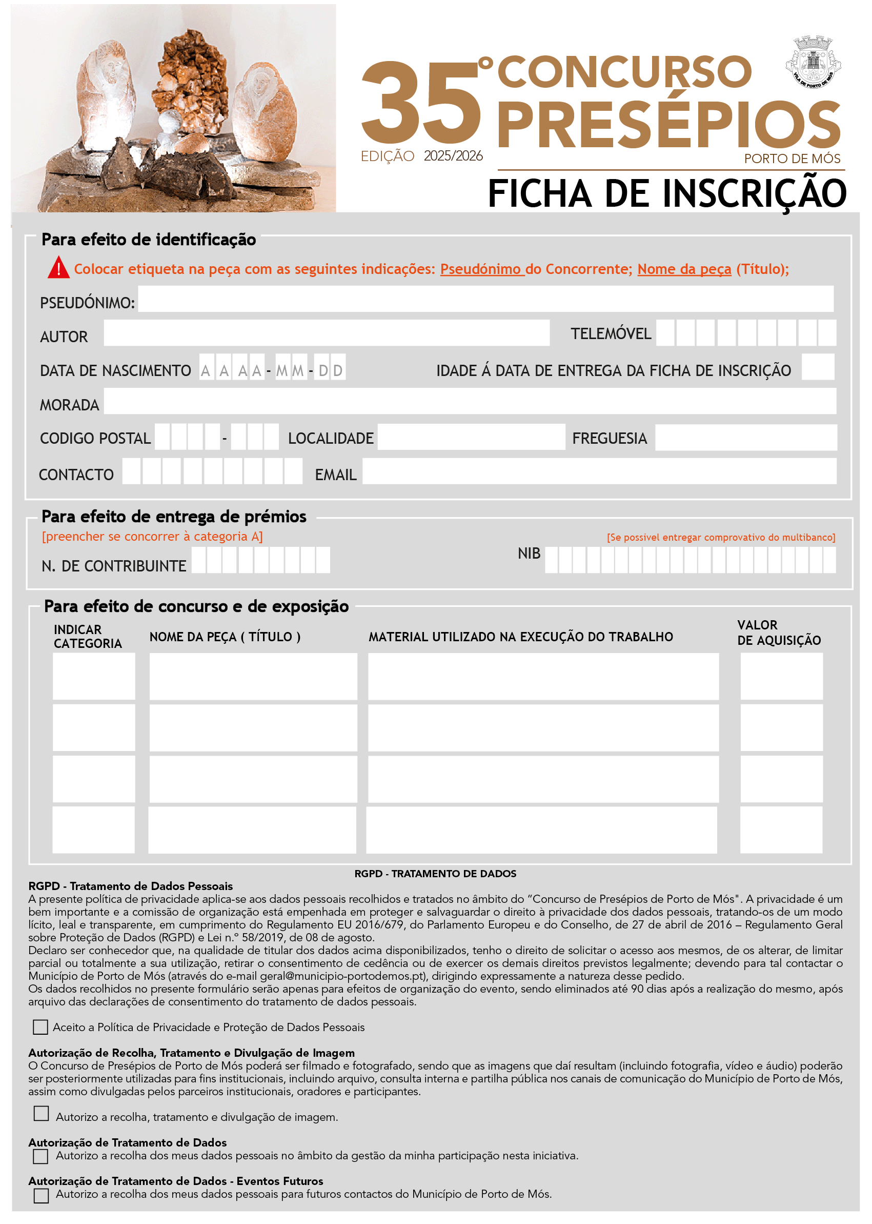 A Câmara Municipal de Porto de Mós informa que já se encontram abertas as inscrições para a 35ª Edição do Concurso de Presépios.