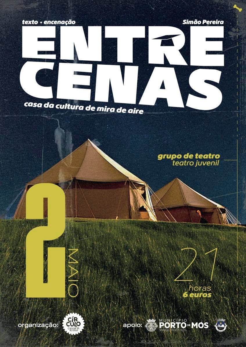 Entre Cenas é uma peça de teatro juvenil que resulta do processo de formação de um grupo de jovens atores ao longo de mais de seis meses. Criado, escrito e encenado por Simão Pereira, numa clara aposta do Círculo Cultural Mirense nos talentos e cultura do nosso concelho.