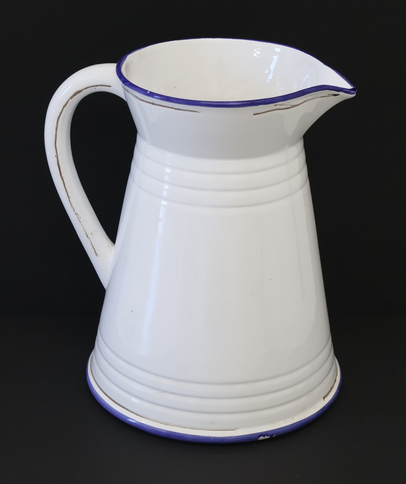 Assim, no próximo dia 15 de Outubro, celebra-se o Dia Mundial da Lavagem das Mãos. De forma a comemorarmos este dia, apresentamos o conjunto de jarro e bacia em cerâmica. Muitas são as pessoas que ao visualizarem estas duas peças, se reportam às memórias e herança dos seus antepassados (inícios do séc. XX), em que era muito usual as famílias terem um conjunto com idêntica forma e cores, não em faiança mas em metal (esmaltado a branco, com borda azul). Eram peças a que era dado muito uso, deixando-as com muito desgaste, fazendo com que chegassem muitos poucos exemplares em bom estado de conservação até aos nossos dias.